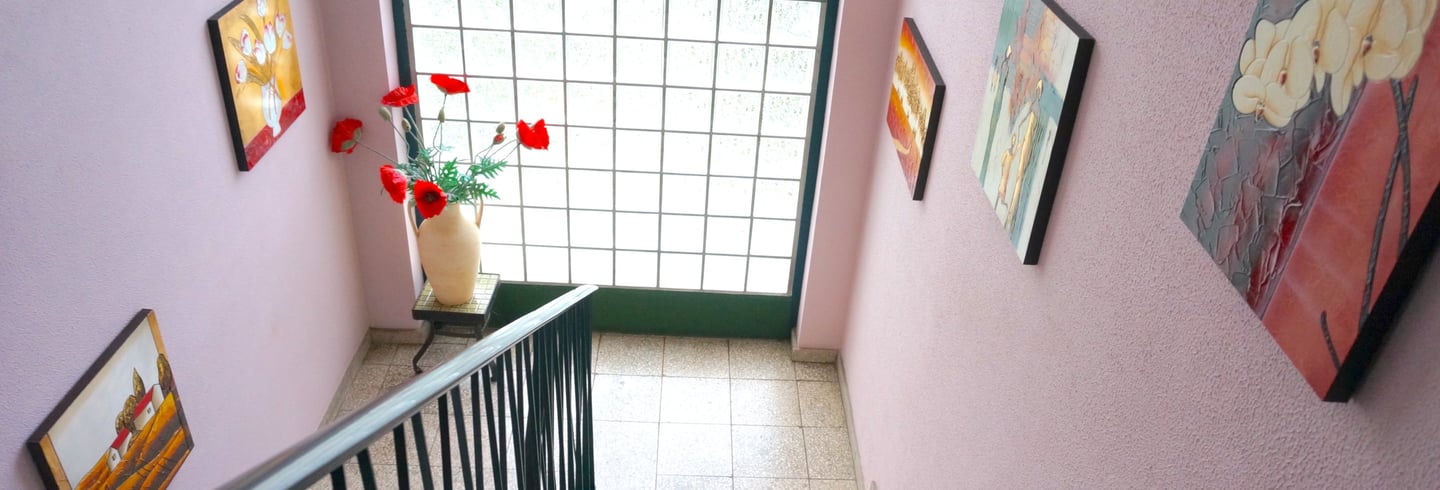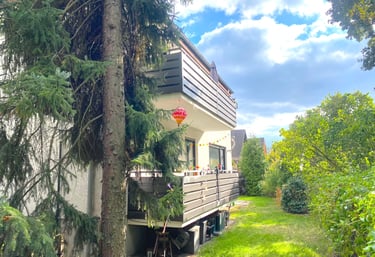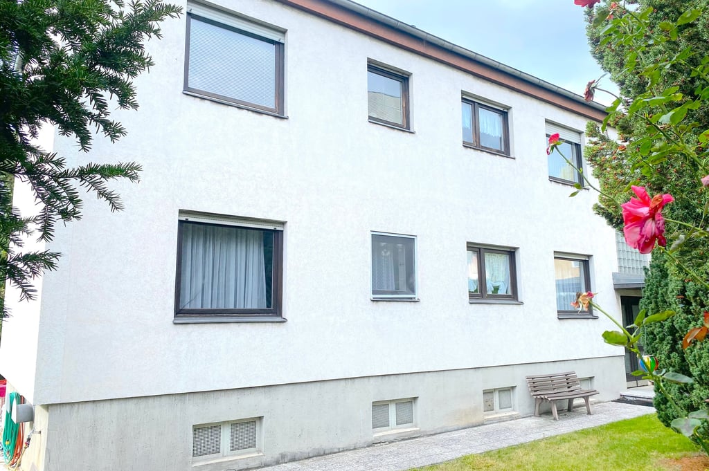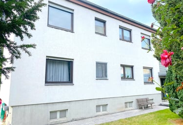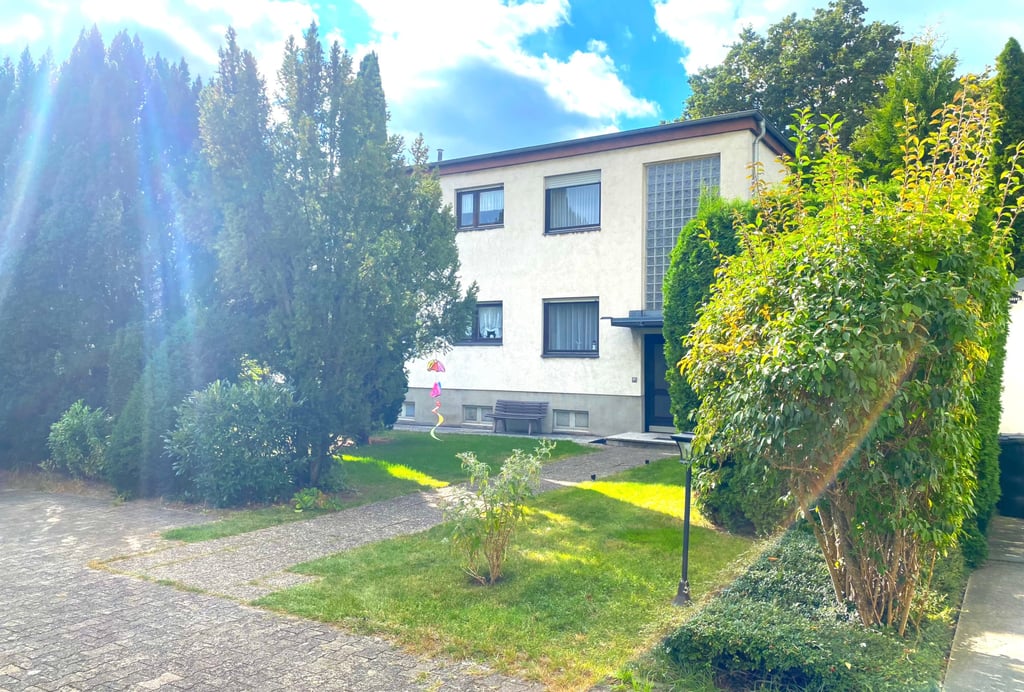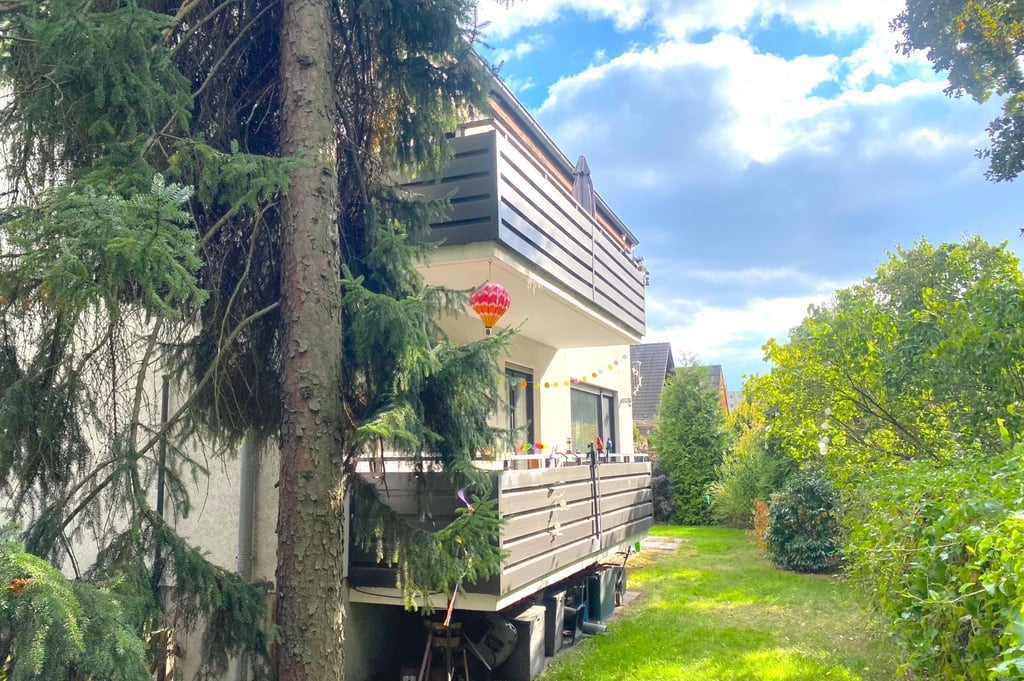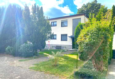 - Das Wohnhaus auf der Rückseite des Grundstücks grenzt an einen Park und an Einfamilienhausbebauung.