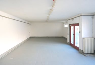 -Der Gewerbebau kann durch ein mehrstöckiges Wohn- und Geschäftshaus (ca 1200 m² Fläche) ersetzt werden. Sowohl das Nachbarhaus, als auch das Zweifamilienhaus auf dem Grundstück sind mit Brandwänden auf einen Anbau vorbereitet. Eine Planung für den Anbau an das Zweifamilienhaus besteht bereits.